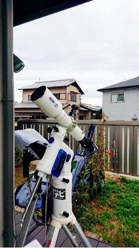 軒の奥へ。なんや!ここで十分南天、東天見えるやん!序に北極星も見えるから、極軸合わせも出来る、ということが分かりました、天体観測はここで十分です。
