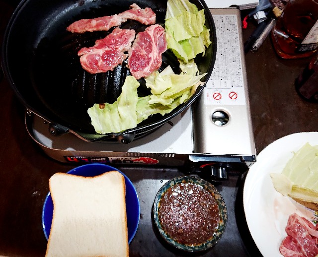2019-10-23 今日は、一人で、昨日とほぼ同じルート のツーリング。天気が良いので、昨日はあまり、映えなかった水の流れが撮れるだろうと、行きました。ごろごろ水も8L汲みました。写真は後程、それと昨日の甥との道中記も。14:30に買い物もして帰り、今は遅い朝・昼食、ジンギスカンしてます。上はジンギスカン鍋、右はキャベツとラム、真ん中はタレ、左が受け用の食パンです。鍋の上から落ちた油でキャベツ炒めしてます、美味しいです。