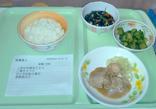 2024/09/17 夕食 鶏肉のごまだれ焼きがメインでした。ひじき、きゅうりも美味しかったです。