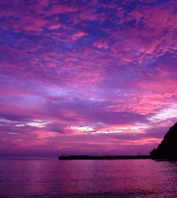 産湯の夕焼けの海です。上の元画像は長男の手によるものです。