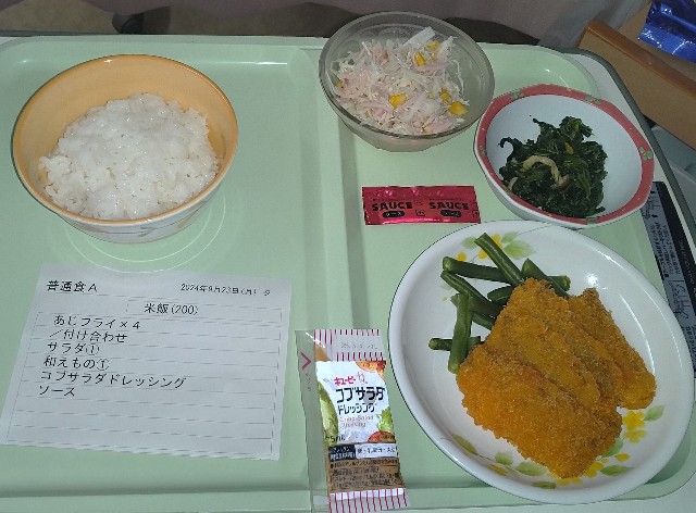 2024/09/23 夕食アジフライ中心でした。勿論、美味しかったです。