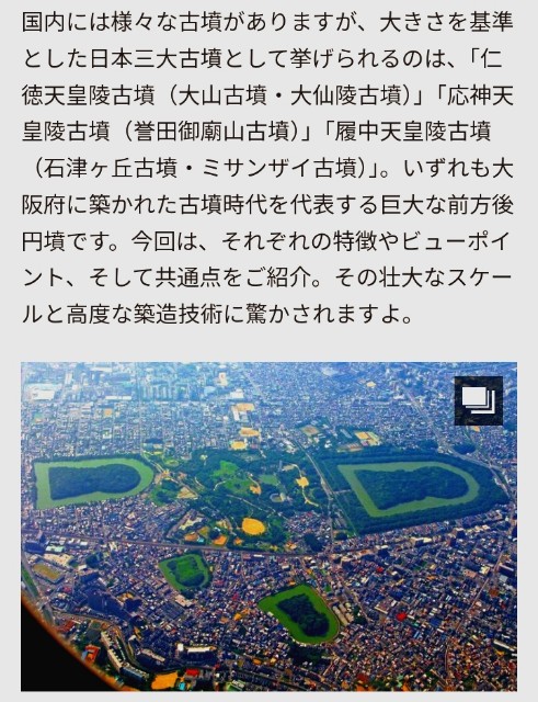 古墳。大事な遺産です。ただ、忘れてならないのは、一つ一つが一人の人のお墓だと、いう事です。仁徳天皇陵然りです。いかに広大でも原義は変わりません。 奈良県橿原市周辺に新沢千塚古墳とゆーところが、あります。実際は千もないらしいですが、小さな丘が連なっています。それみな古墳、(多分、赤ちゃんか子どもの皇室の墳墓)お墓です。新沢千塚古墳公園ってのがあって、休日とかは、家族連れで公園の芝生に遊びに来ますが・・・確かに墓標も無く、ただ見ると綺麗な丘陵地帯なんですけど・・・ まぁまぁ平和そうで皆、健康で元気なら、それで良いです。